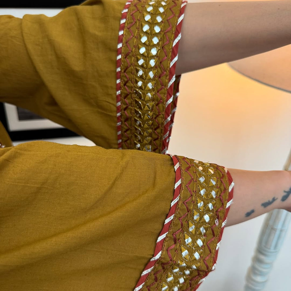 Festive Gulhad Wear Machine sequin embroidered A line kurta with embroidered lace with lace detailed palazzo printed cotton dupatta