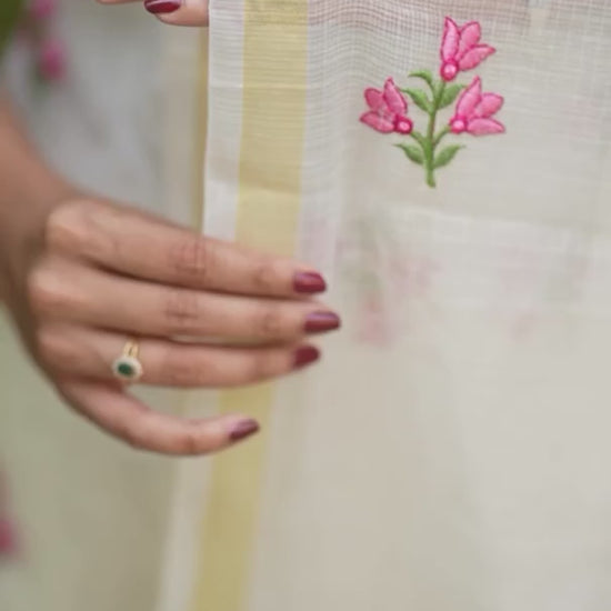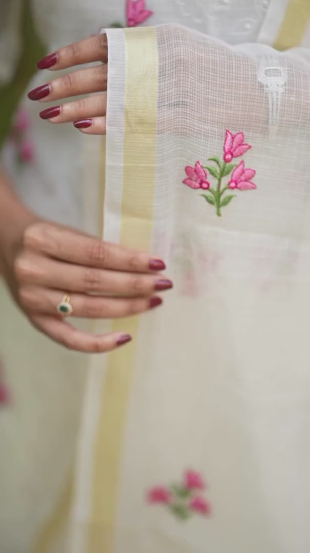 The intricately embroidered Kota Doriya kurti, complete with a soft cotton lining, pairs gracefully with a full-size Kota Doriya dupatta and tailored cotton pants. Perfect for showcasing the purity and sophistication of white on any special occasion