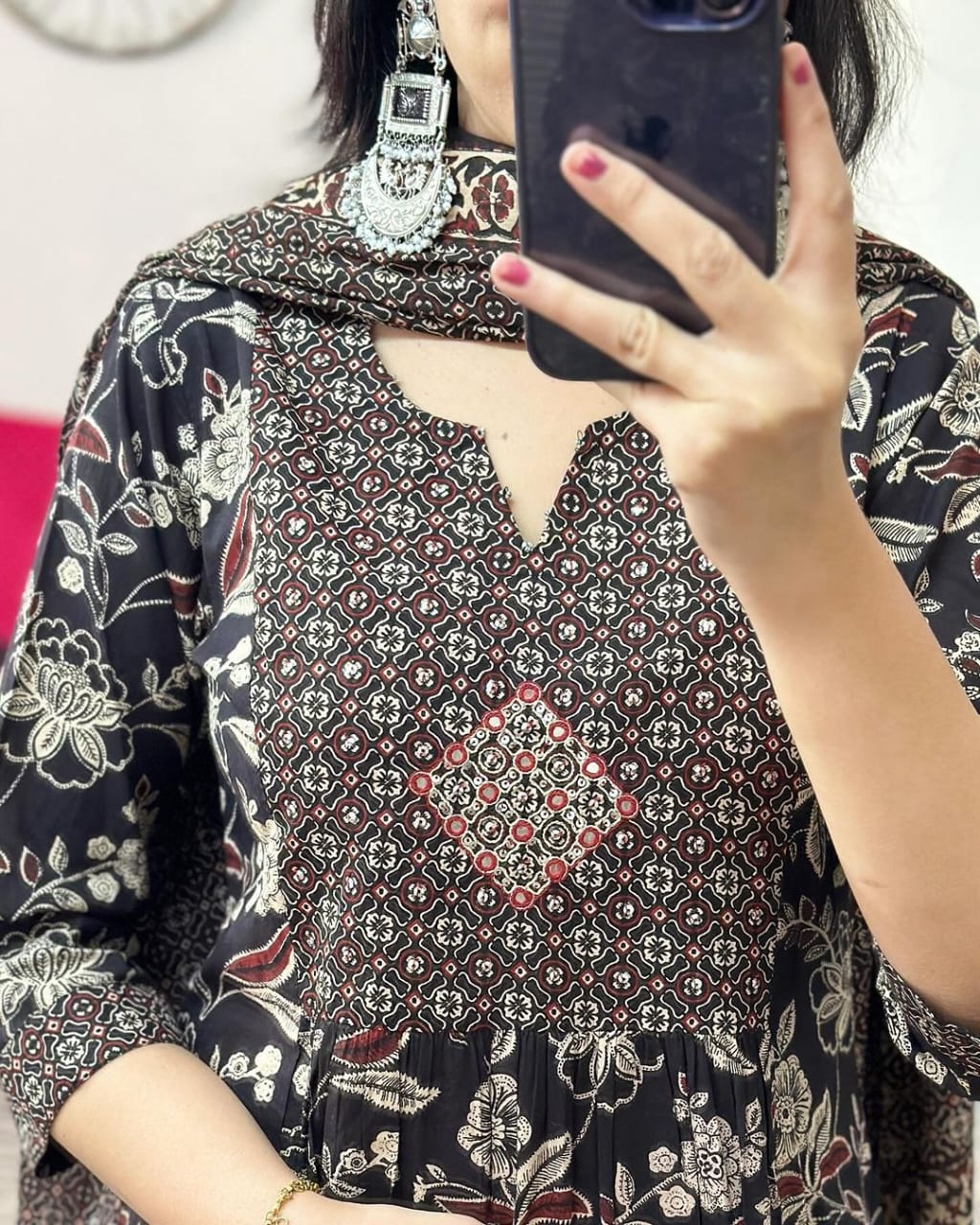 ππ *Summer Special Cotton Fabric Beautiful Print And Hand Work Kurti Paired With Pant And Full Printed Dupatta* ππ